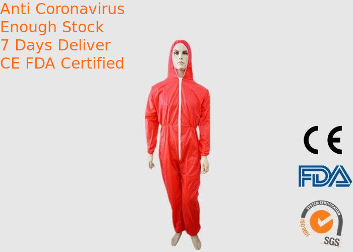 | ชุดคลุมกันฝุ่นโพลีโพรพิลีนสีแดงแบบใช้แล้วทิ้ง | |